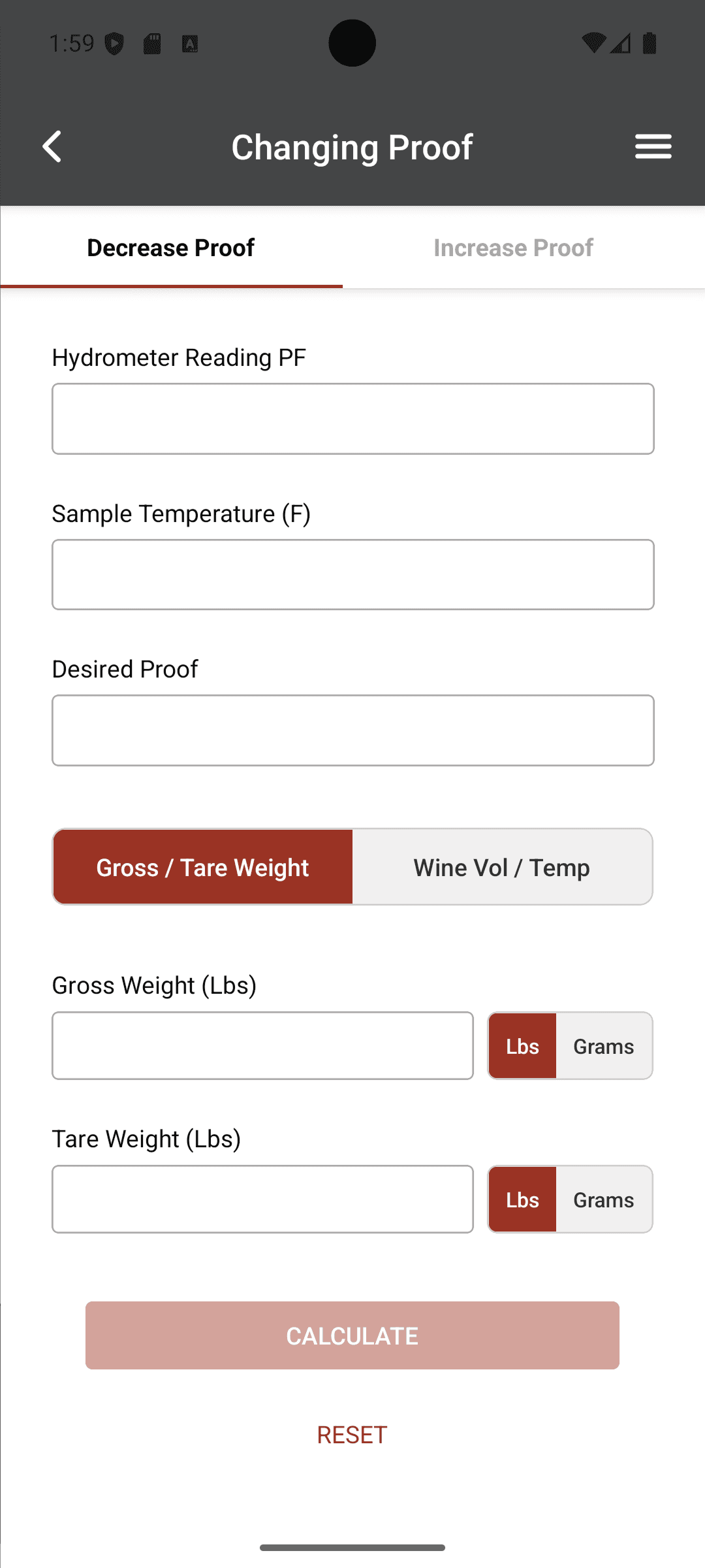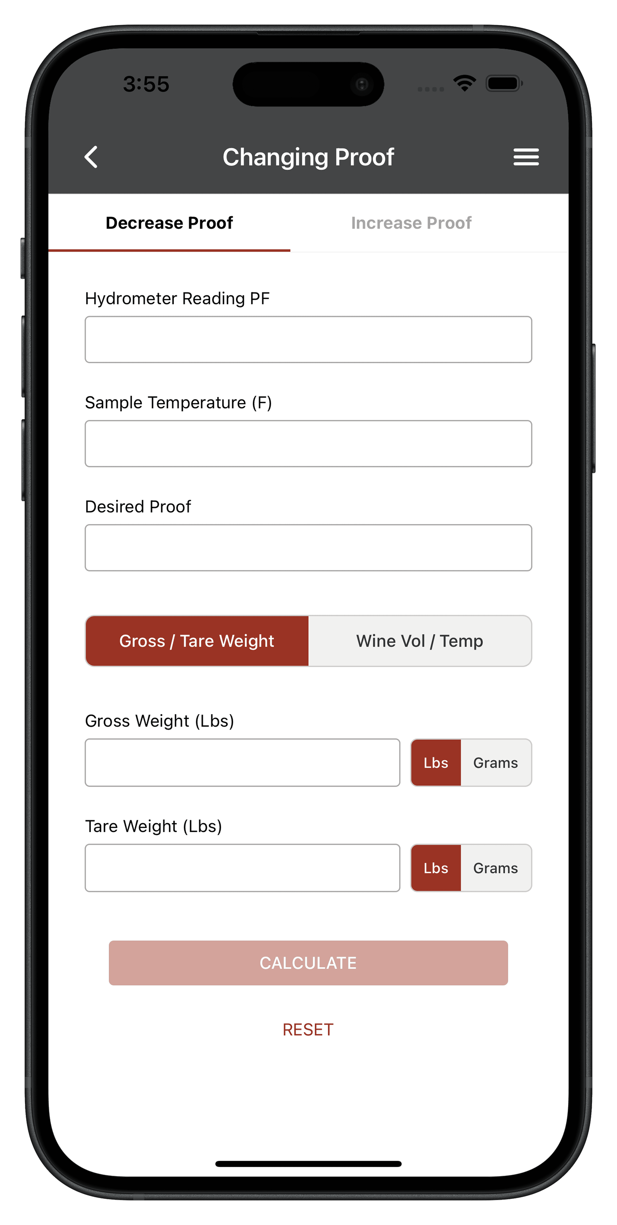 Allows distillers to switch between gross/tare weight or volume-based inputs, supporting different workflows and equipment setups without forcing a single approach.