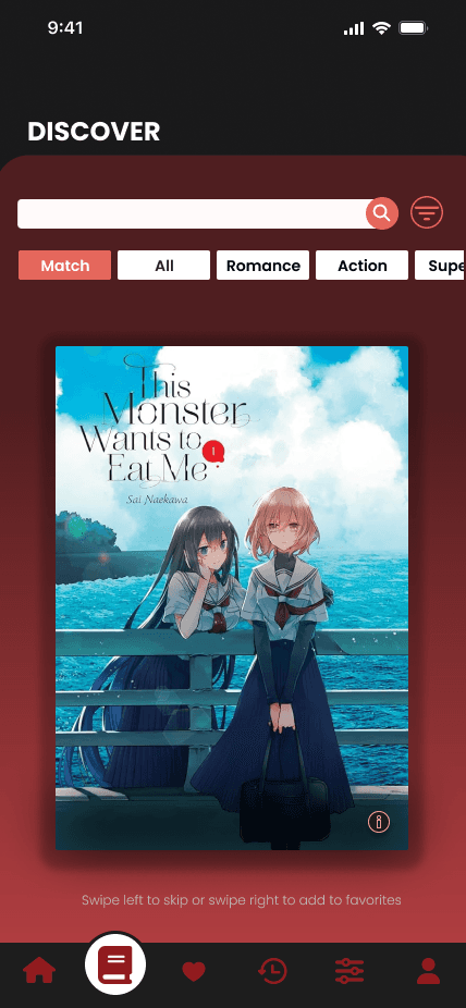 Uses swipe interactions to recommend manga based on user preferences, making discovery feel lightweight and engaging.